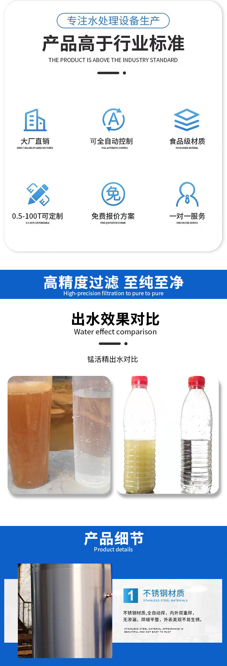 日用水量100T一體化凈水器 用于泳池員工宿舍 民宿 餐廳洗滌